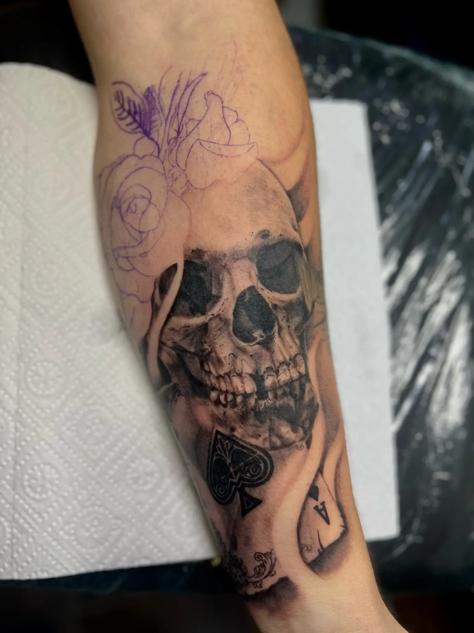 Dein Motiv wird zum Termintag vorbereitet. Wir schicken in der Regel keine Zeichnungen und Entwürfe vorher heraus. Wir besprechen am Termintag dann Fragen wie genaue Größe und Platzierung in Ruhe vor Ort. Wir planen Termine zeitlich großzügig und somit sind kleinere Änderungen in der Regel problemlos umzusetzen. Tätowiervorgang und Nachsorge besprechen wir ausführlich mit Dir. Komme entspannt, ausgeschlafen und gerne mit etwas Nervennahrung im Gepäck an und mache Dich nicht verrückt!